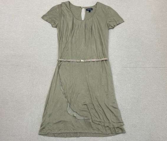 - (I07865) エンポリオアルマーニ EMPORIO ARMANI JEANS ビスコース×シルク切替ベルト付きラップ風ワンピース I38 カーキ系
