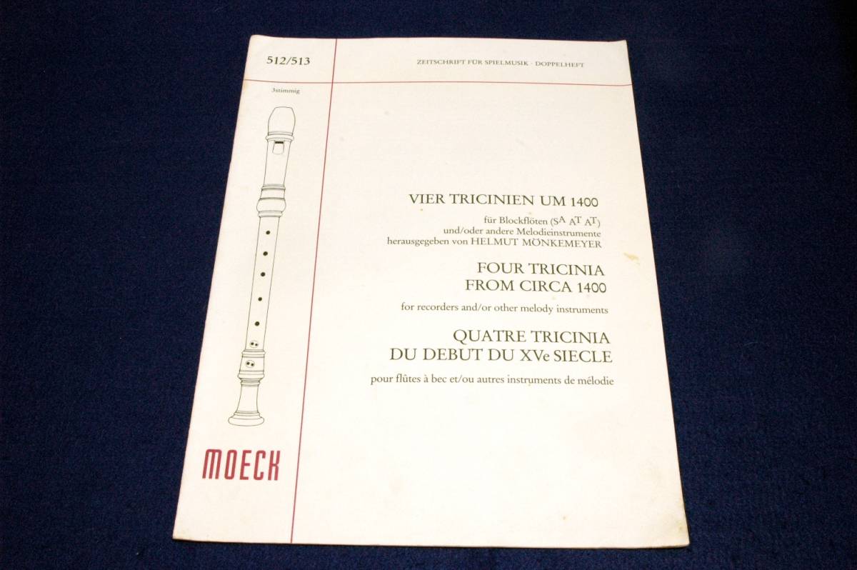 - Moeckメック輸入リコーダー楽譜512/513【VIER TRICINIEN UM 1400(FOUR TRICINIA FROM CIRCA 1400)】Zeitschrift fr Spielmusik