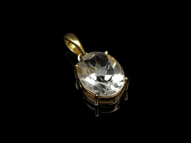 - 天然水晶 クリスタルクォーツ オーバルファセットカット ペンダントトップ 12×10mm[18KGP]【1コ販売】 / 60-17 CQ12PT