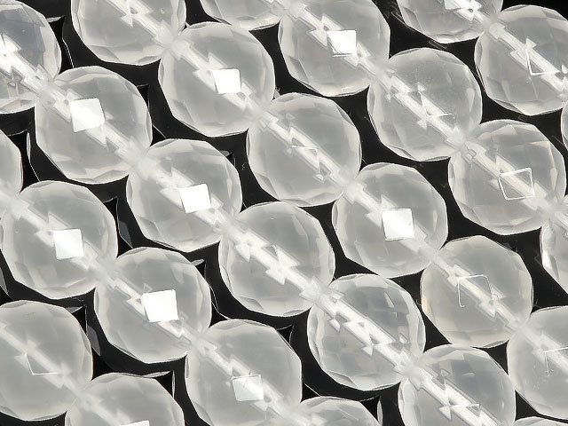 - ミルキークォーツ 64面カット 丸玉 8mm【1連販売】 / 2-20 MQ8MC