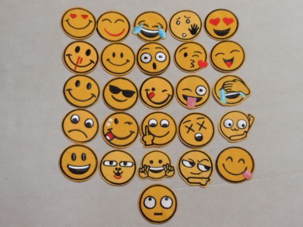 - 送料無料 スマイル ニコちゃん かわいいワッペン 26個セット 刺繍 アップリケ