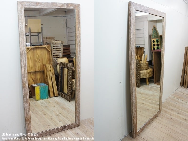 - オールドチーク無垢材 姿見鏡 170cm×80cm×3cm ホワイトウォッシュ 全身ミラー アジアン家具 送料無料