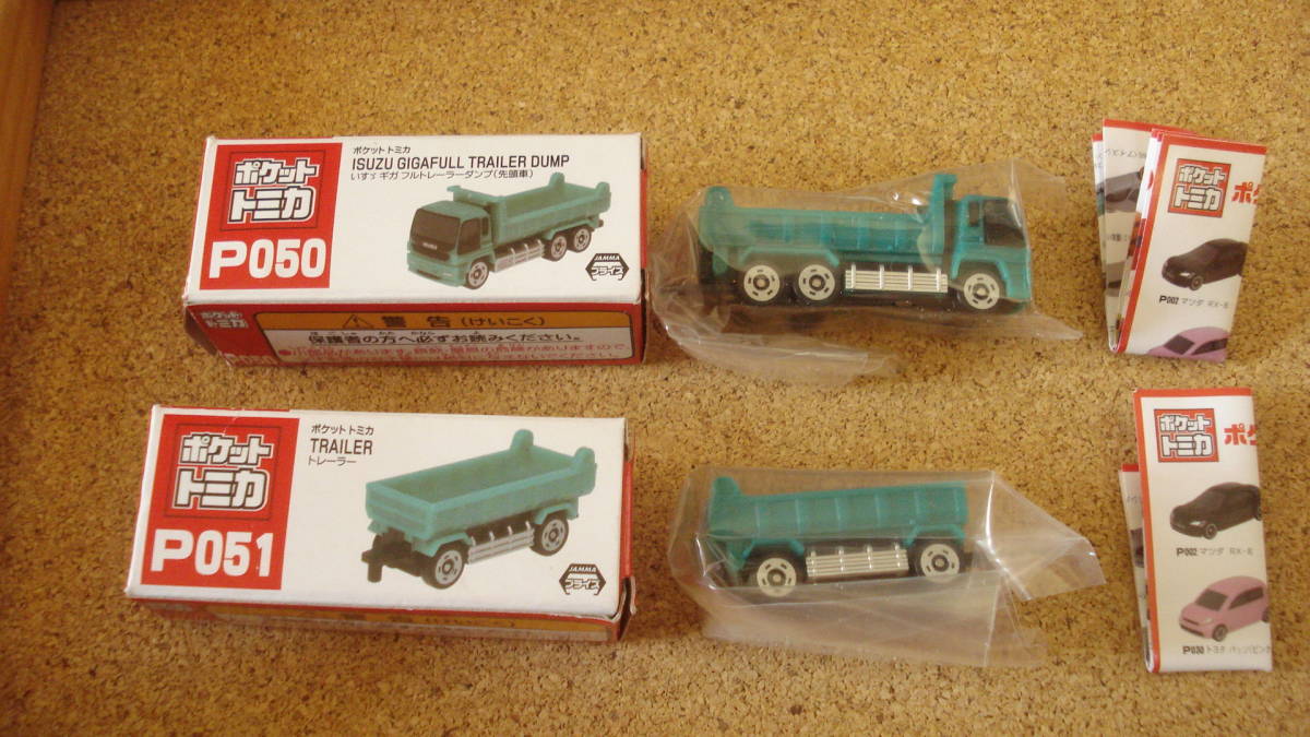 > ポケットトミカ P050・P051 いすゞ ギガフルトレーラー 先頭車(P050)+トレーラー(P051)緑//VOL.11//2台組