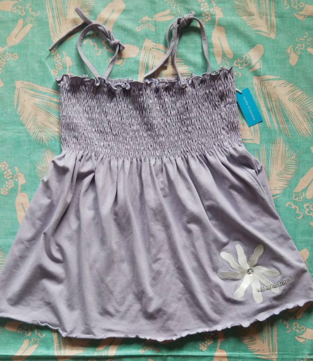 - ★ALOHA STANDARDSアロハスタンダード新品タグ有★チューブトップベアトップキャミソール★パープル藤色SMLフリーサイズ/総ゴム/ハワイフラ