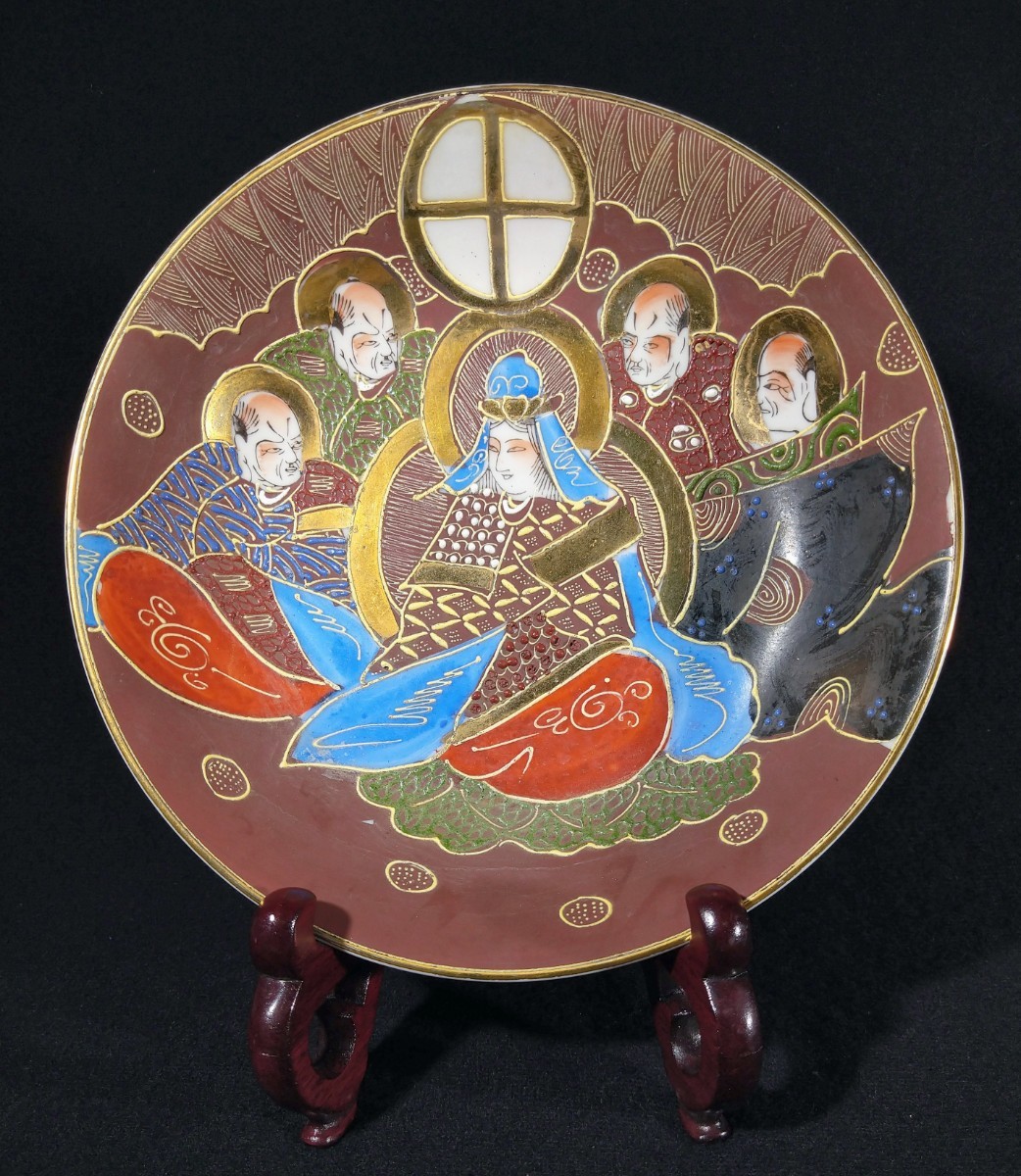 - 薩摩焼 金彩 色絵 人物図 19cm 中皿 幕末〜明治期 btrpci-69(21下)a3098k