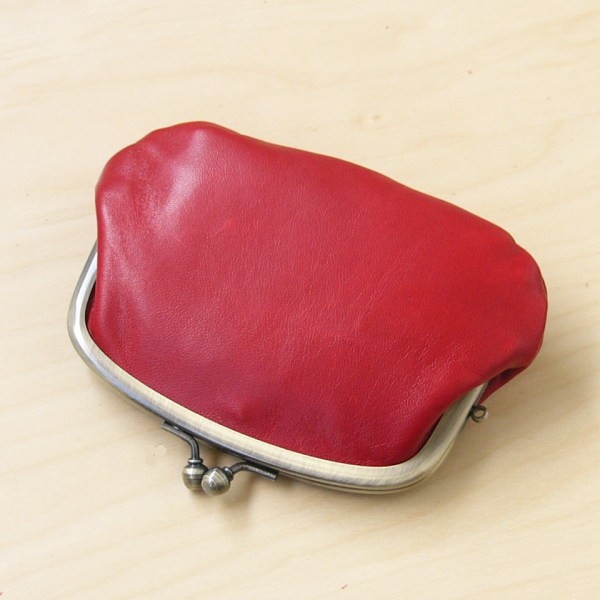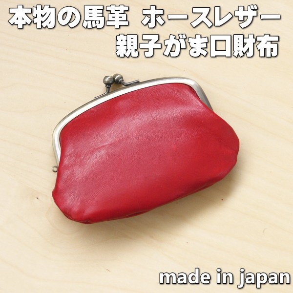 - がま口財布 本革 ホースレザー 小銭入れ 馬革 親子がま口 レッド 新品 日本製 メンズ レディース ユニセックス