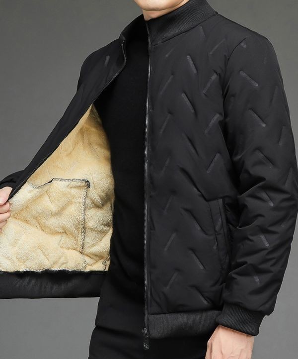 - t12【 M 黒 】 裏起毛 ジャケット メンズ 服 ブルゾン キルティング風 アウター ジップアップ カーディガン 通学 通勤 防寒
