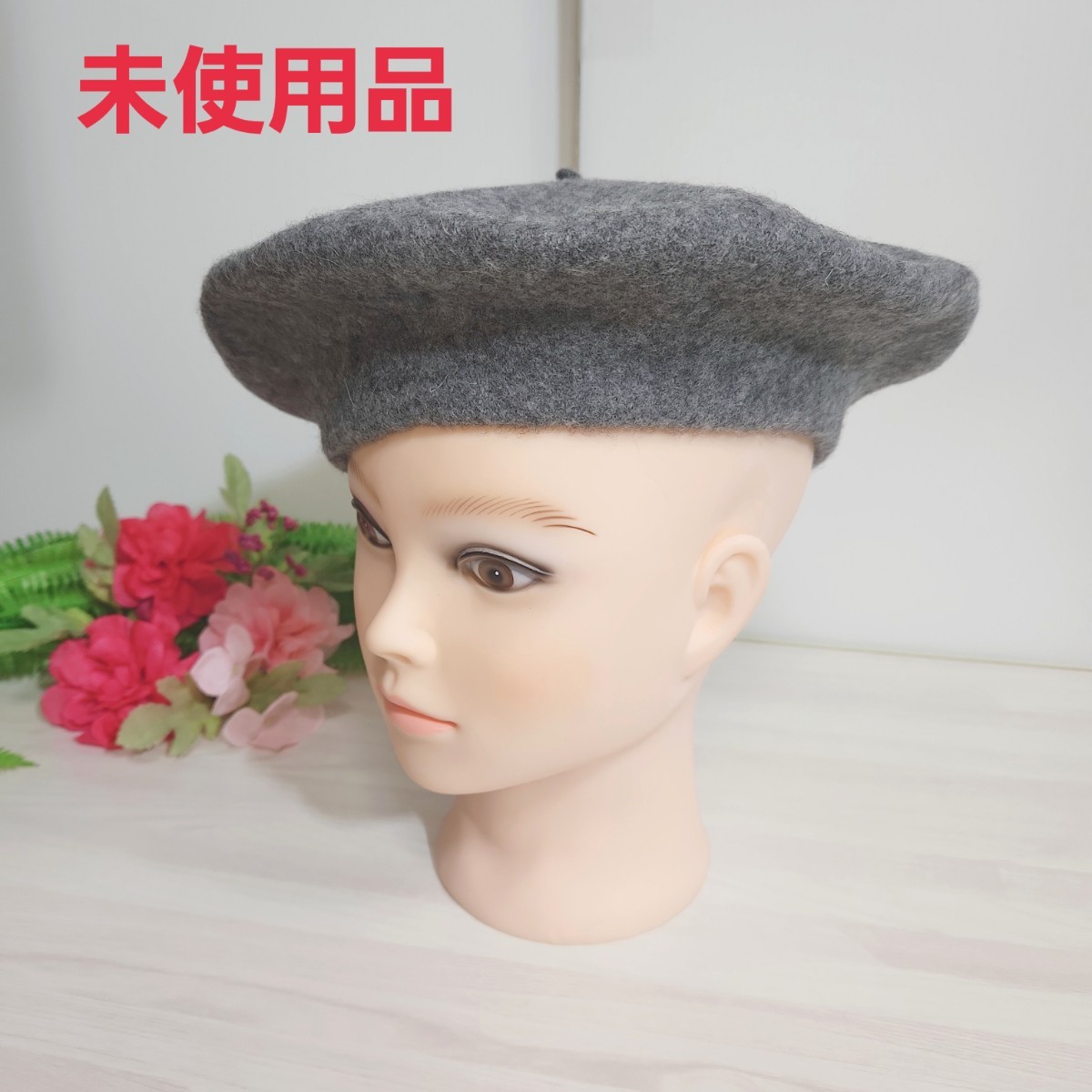 - 未使用品 ウール90% ベレー帽 グレー レディース