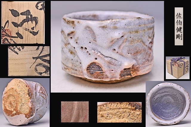 - 佐伯健剛 ★ 志野 ぐい呑 ★ 共箱 共布 栞 ★ 師: 澤清嗣 ★ 信楽土の土味に鼠志野の釉景指跡までも景色となった逸品 ★ 酒器 杯 盃 ★