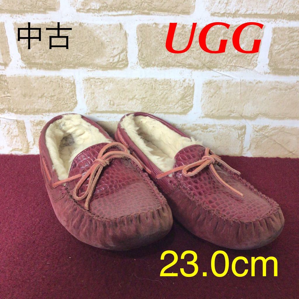 > 【売り切り!送料無料!】A-27 UGG!アグ!パンプス!ぺたんこ!23!赤!ワインレッド!おしゃれ!かわいい!もこもこ!冬!中古