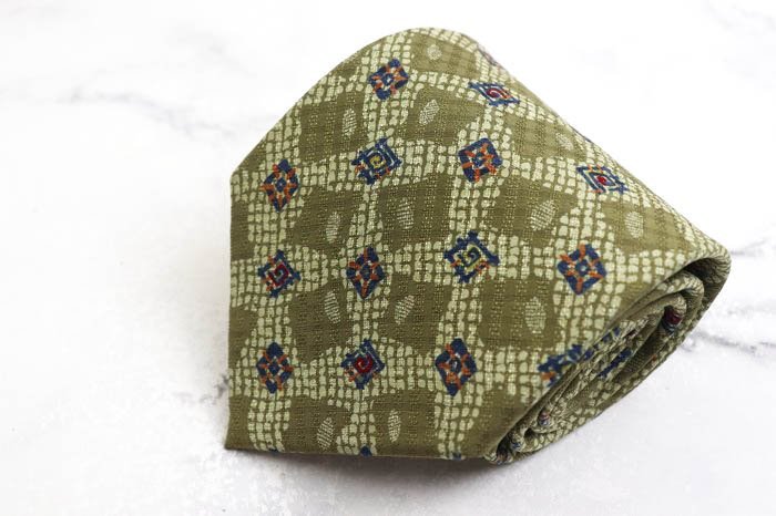 > マリクレール ブランド ネクタイ シルク 小紋柄 格子柄 メンズ グリーン mariclaire