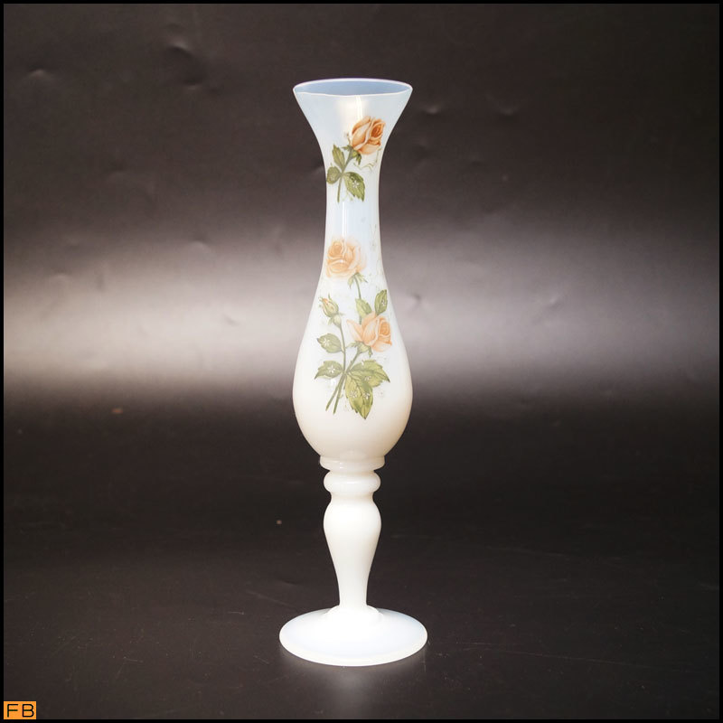 - 1312-ORWAL◆フラワーベース 乳白ガラス 手描き バラ 花器 アンティーク レトロ 一輪挿し フランス製