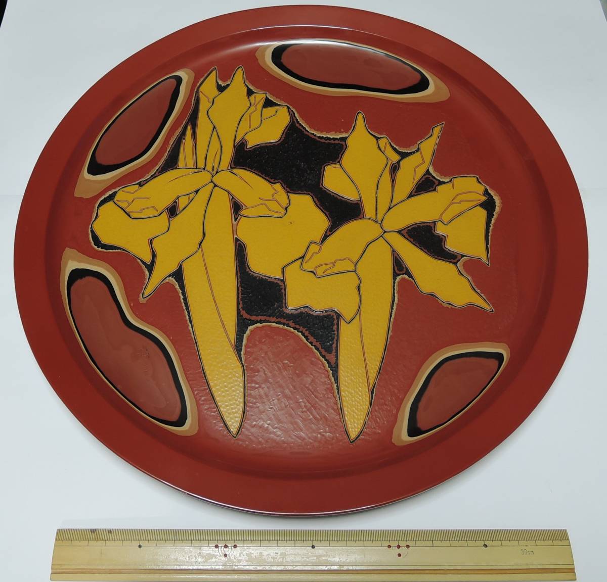 - ☆000■讃岐漆芸 紅峯荘 高橋耕南 アイリス 彫漆飾盆■未使用