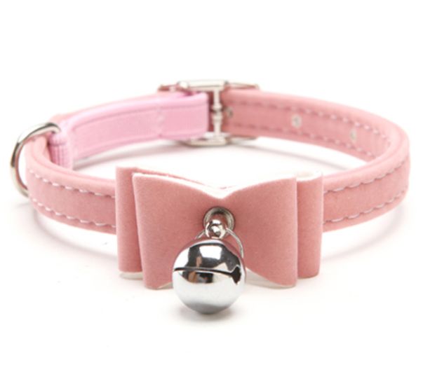 - 送料無料! にゃんこ用 スウェード風シンプルデザイン首輪(鈴付き)全6色 かわいいリボン・モチーフ!