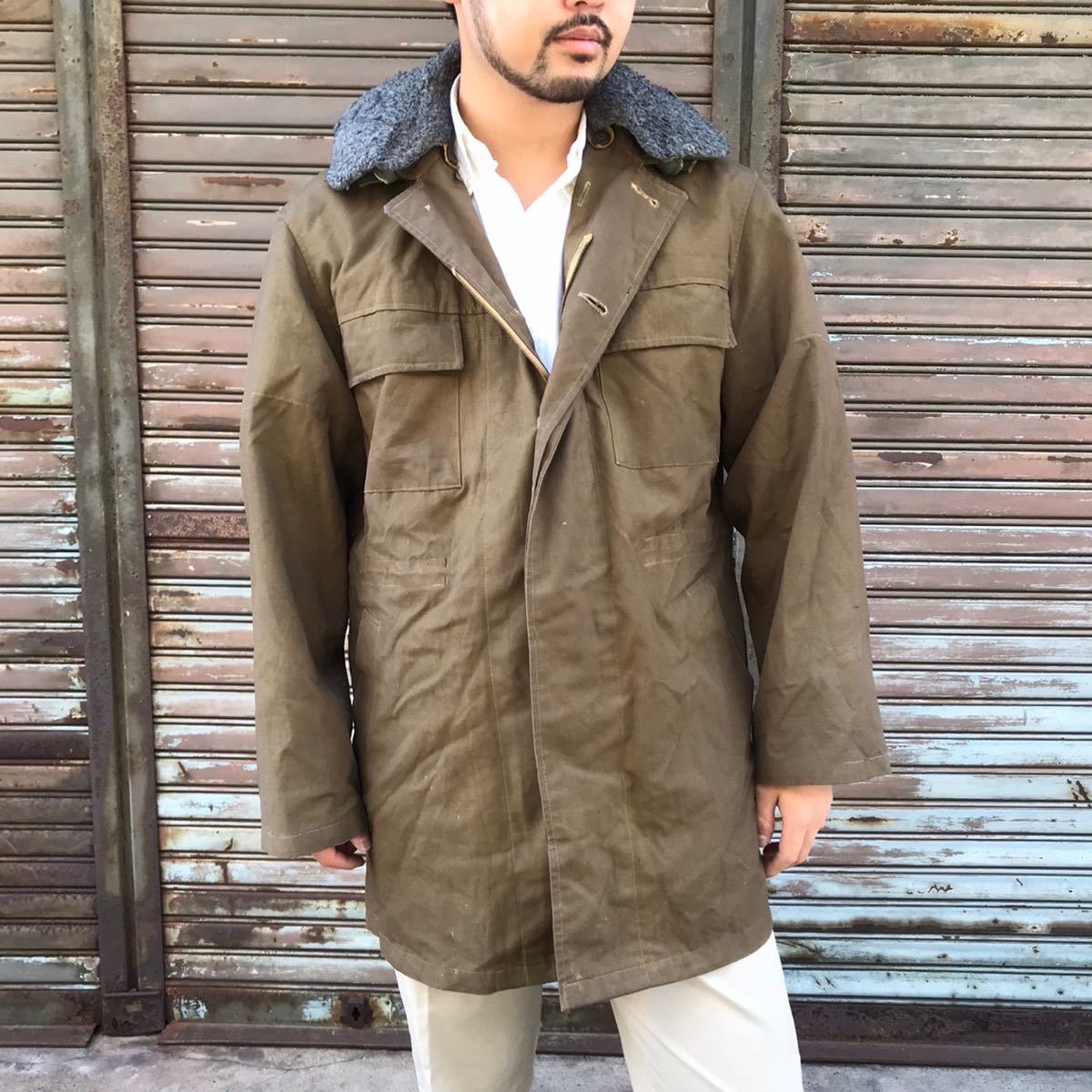 > 貴重なフード付き 80s Czech Army チェコ軍 実物 ヴィンテージ M-85 襟ボア付き フィールドジャケット ミリタリー コート 70s 軍物