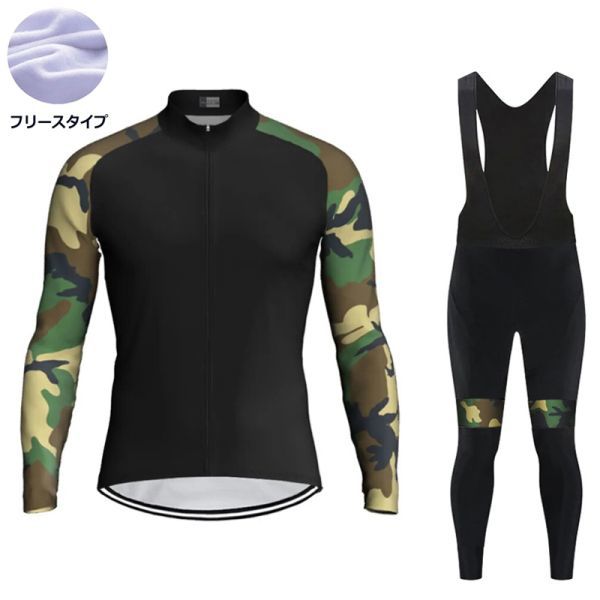 > 新品 長袖 裏起毛 上下セット No96 Mサイズ 迷彩 サイクルジャージ ウェア メンズ サイクリング MTB ロードバイク 自転車 フリース