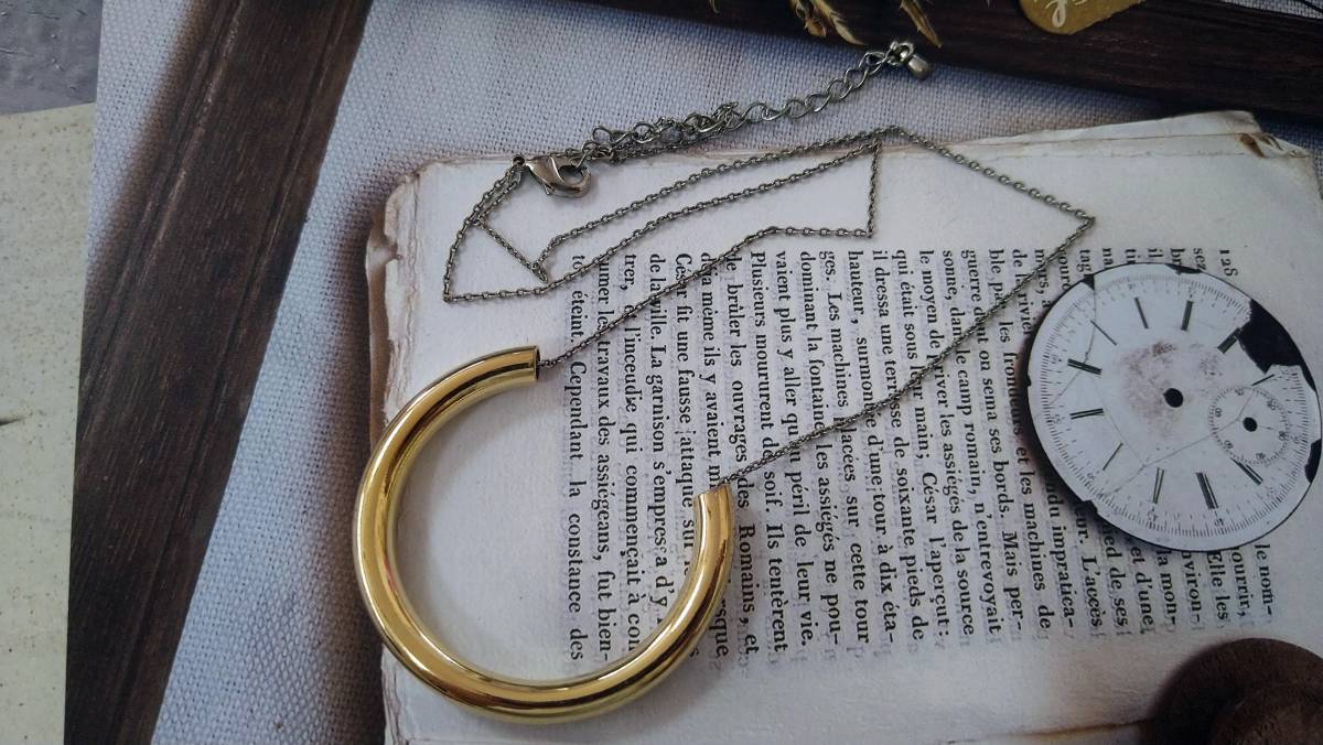 - シックな印象 ゴールドカラーパイプ デザイン ネックレス