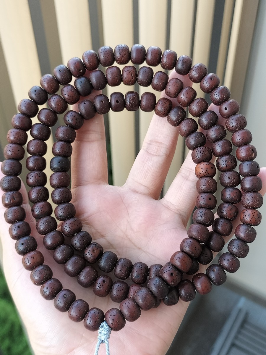 - 文玩 黒金玉化星月菩提 ルトラクシャ 天然実 念珠 数珠 ネックレス 108粒