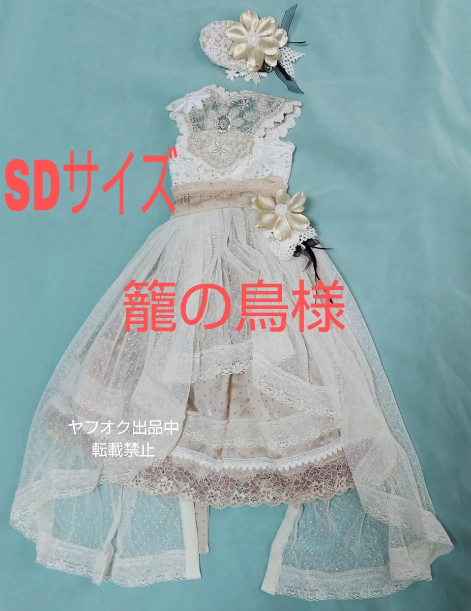 > 即決有 SDサイズ ディーラー製 ドール衣装 籠の鳥様 オーバースカート ワンピース シルバー ゴールド ドールドレス ドール服 OF outfit A