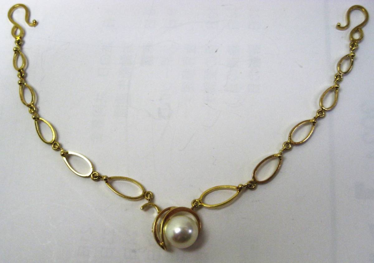 - 【東京 谷中 質屋おぢさん】K18 18金 羽織ひも パール 7ミリ付 真珠 アコヤ真珠 羽織紐 14cm