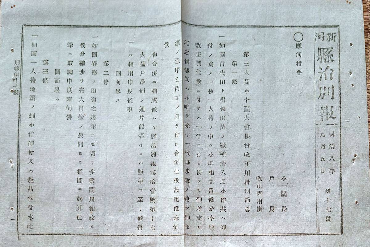 - f23102621〇明治布告布達 新潟 県治別報 願伺司令 大曽根村 明治8年〇和本古書古文書