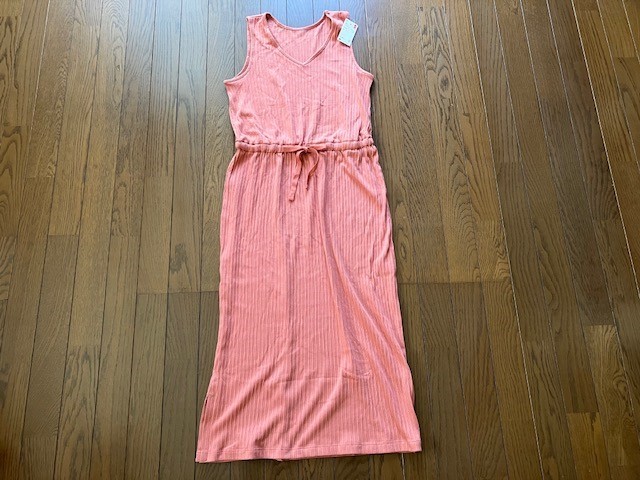 > ユニクロ レディース ボインテール ラウンジワンピース ノースリーブ オレンジ系 ニット 伸縮性 涼しい 未使用 送料無料 底値