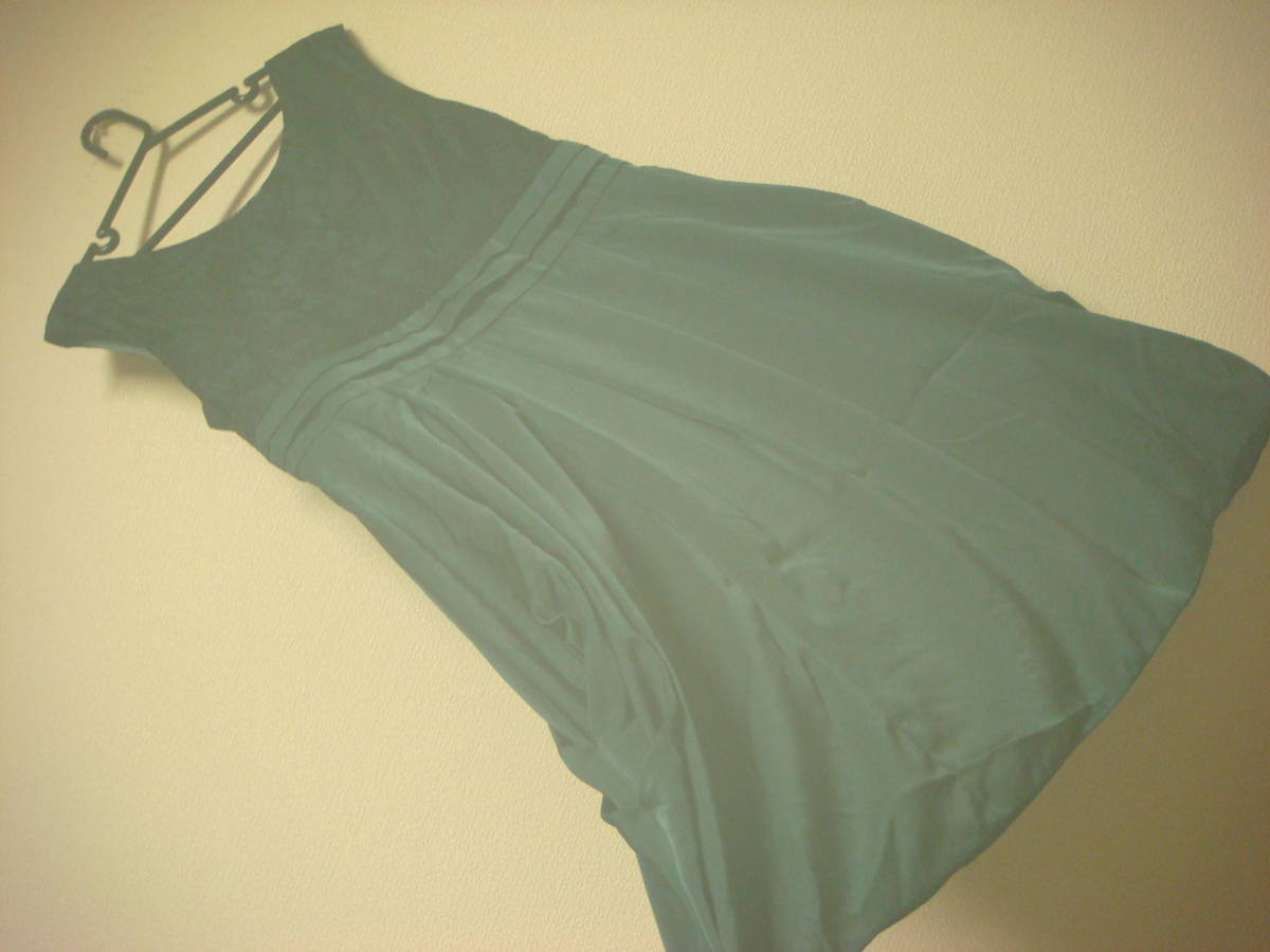 - 大きいサイズ レース切り替え タック入り デザイン ドレス ワンピース 黒緑 美品 13 LL