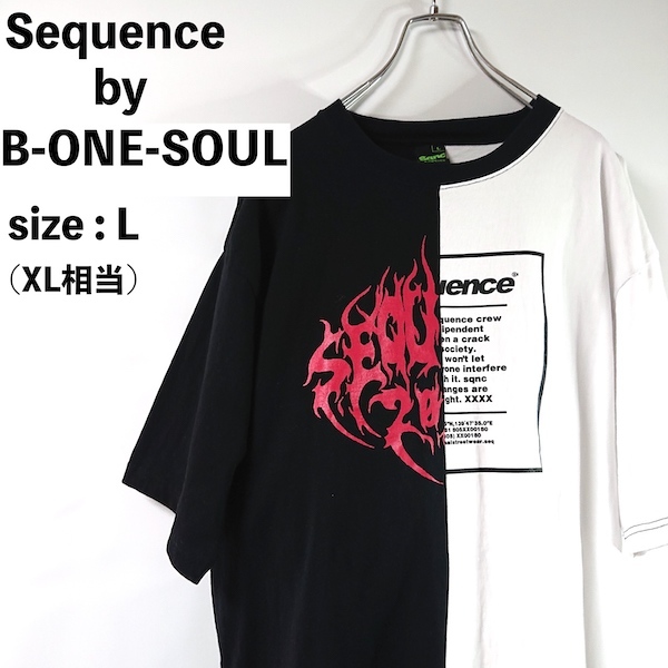> B ONE SOUL ビーワンソウル バイカラー エンブレムロゴ 半袖 Tシャツ XL相当 L プリントTシャツ 半袖 カットソー 黒 ブラック 白 ホワイト