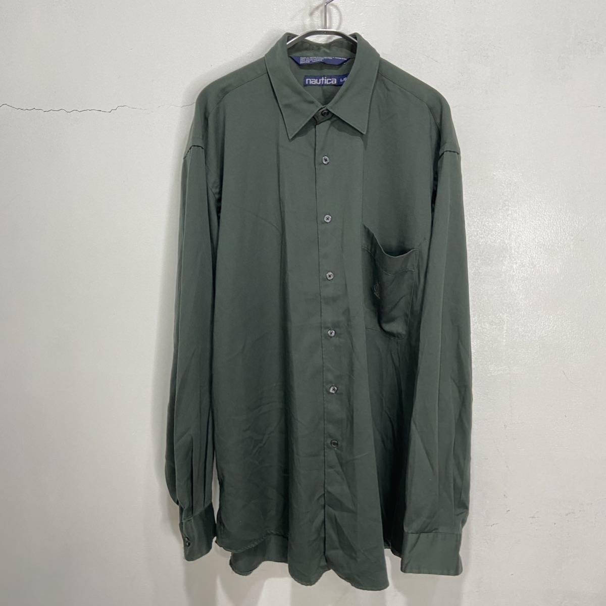 - ☆送料無料☆Nautica☆ノーティカ☆レーヨン長袖シャツ☆メンズL☆緑☆K23