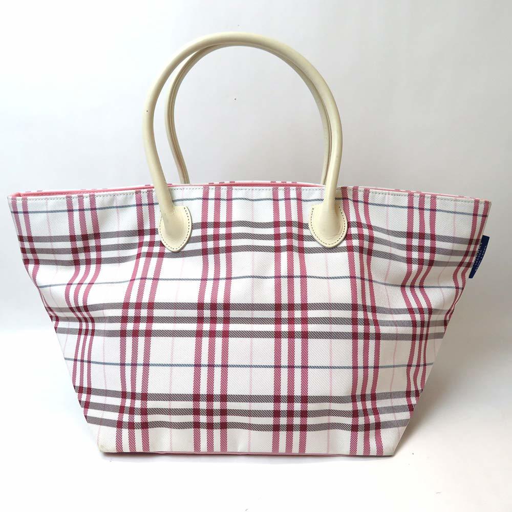 - 中古 バーバリー トートバッグ チェック柄 ナイロンキャンバス Bランク ピンク ワンショルダー レディース BURBERRY【送料無料】【三田店】