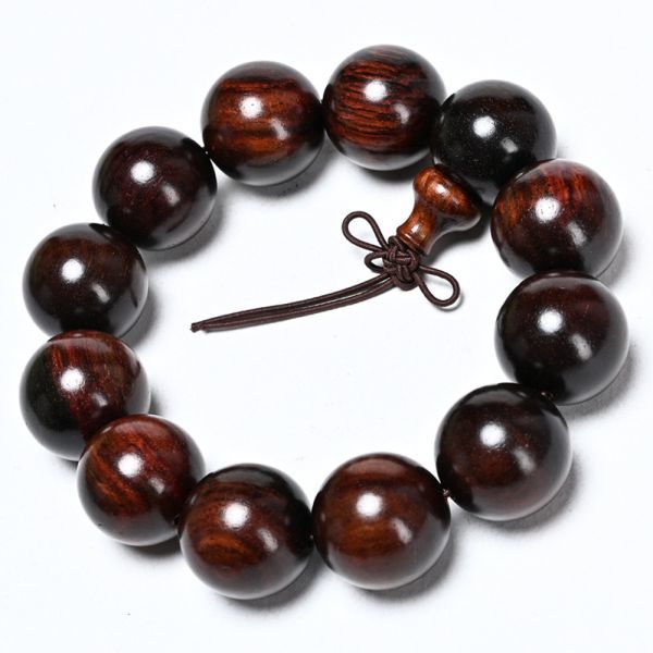 - [EasternStar] 海外発送 ラオス レッド ローズウッド ブレスレット 木珠 数珠 念珠 玉径20㎜ 12玉