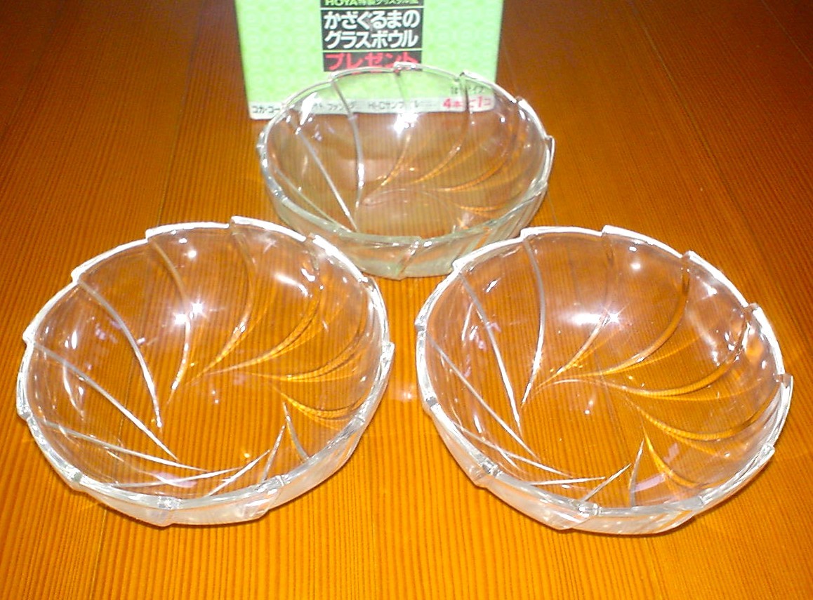 - 新品 HOYA特製 クリスタル風 かざぐるまのグラスボウル 3枚セット コカ・コーラ