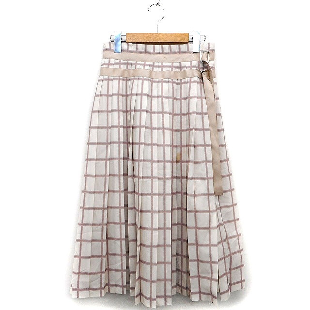 - ジルスチュアート JILL STUART プリーツ スカート ロング ミディ丈 格子柄 飾りベルト M ベージュ /HT27 レディース