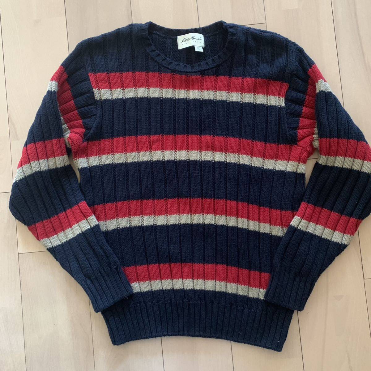 - 90s【Eddie Bauer】エディー バウアー USA製 白タグ コットン ボーダー ニット 縦リブ USのSサイズ ニットセーター