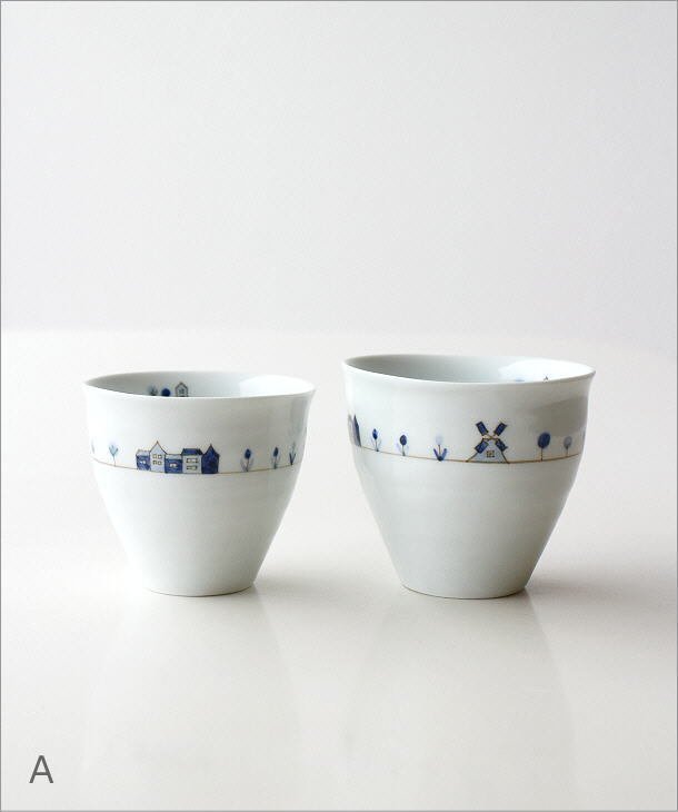 - 湯呑み セット ペア 有田焼 おしゃれ かわいい 和食器 日本製 染付 大小コップセット 【タイプA】 送料無料(一部地域除く) msg5187a