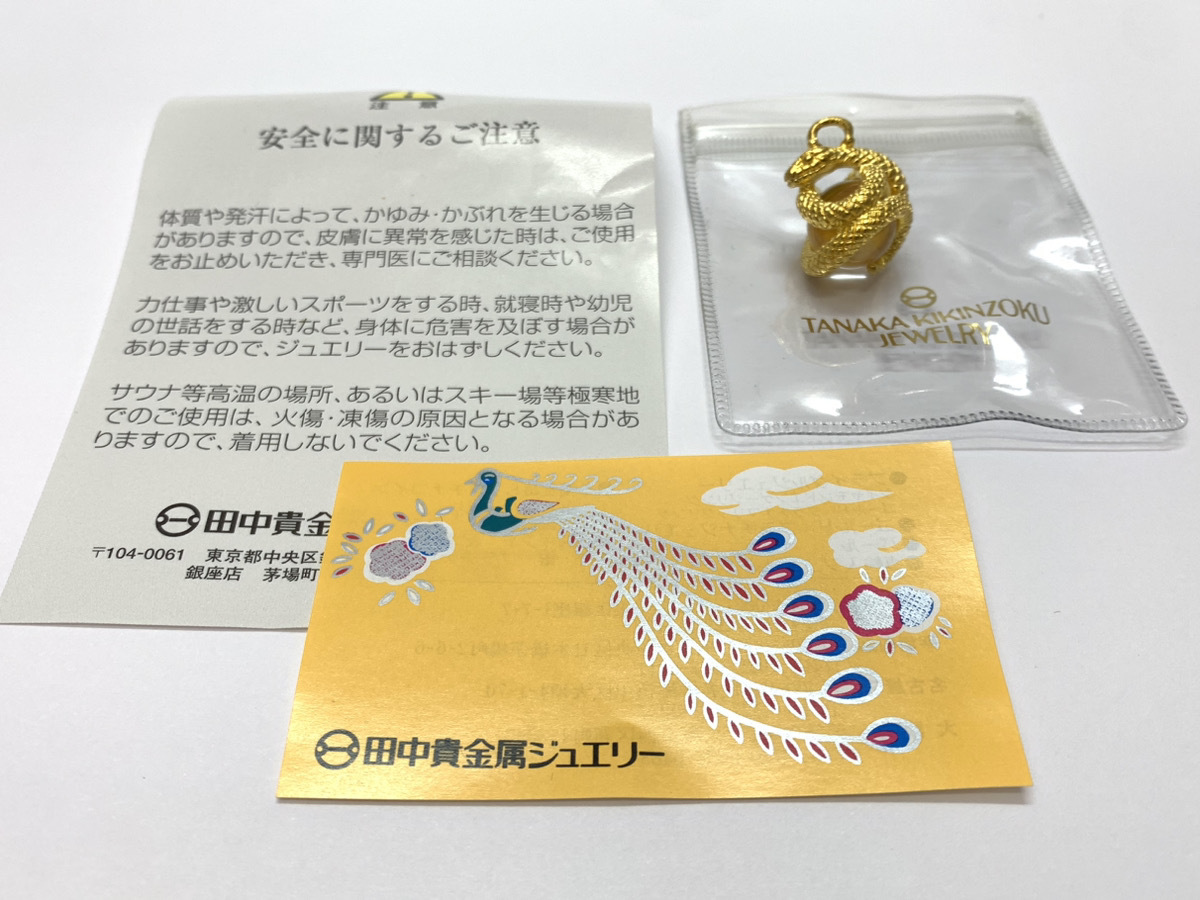 - 【田中貴金属】K24 24金 純金 999.9 蛇 ヘビ 爬虫類 巳年 干支 モチーフ 水晶 透明石 ペンダント トップ イエロー ゴールド 店舗受取り可