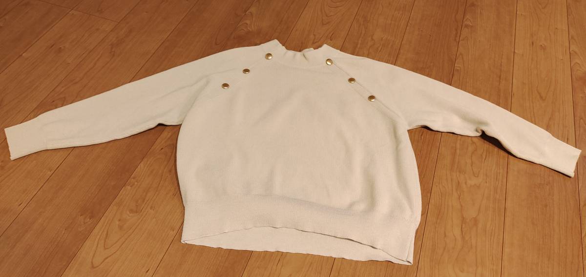 - ラグラン 金ボタン デザイン 柔らか ニット カットソー XL LL