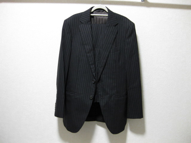 - オーダーメイド★極美品★ストライプスーツセットアップ ジャケット&スラックス黒★5万円相当★オーダースーツ★1点物