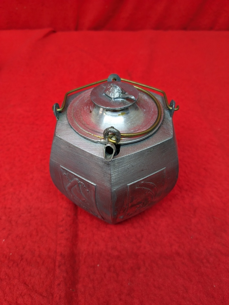 - ★☆中国温酒壺 六角チロリ アイアンポット 亀蓋 錫製 アンティーク (80)☆★