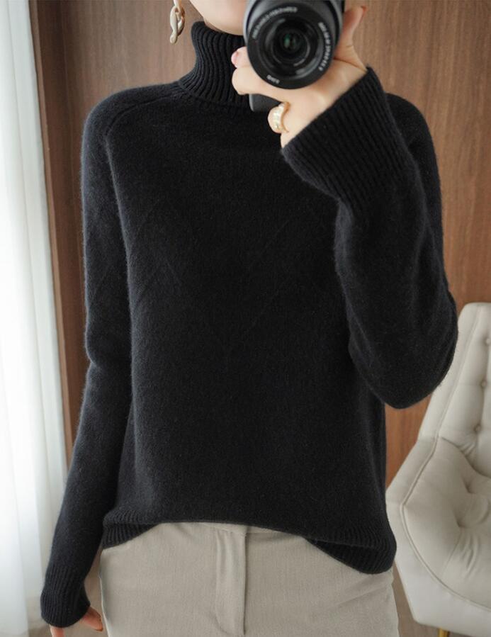 - 秋冬季 / ゆったり ミンクカシミヤ混 ニットトップス ハイネック 通勤 大人 着やせ ニットセーター 長袖 きれいめ / 黒