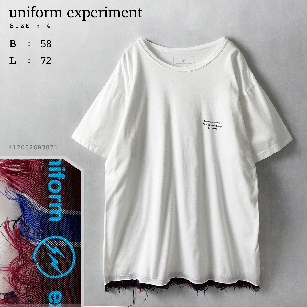 > uniform experiment 4 メンズ XL 薄手 異素材 切り替え レイヤード 半袖 Tシャツ 白 ホワイト 綿 インナー ユニフォームエクスペリメント