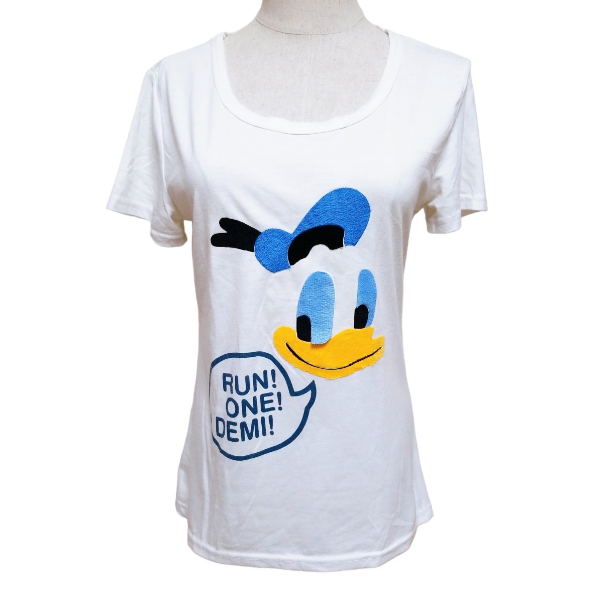 - Y1073 QQQINGLU キャラクター Tシャツ ドナルドダック 半袖 白 ホワイト レディース L相当 タグなし