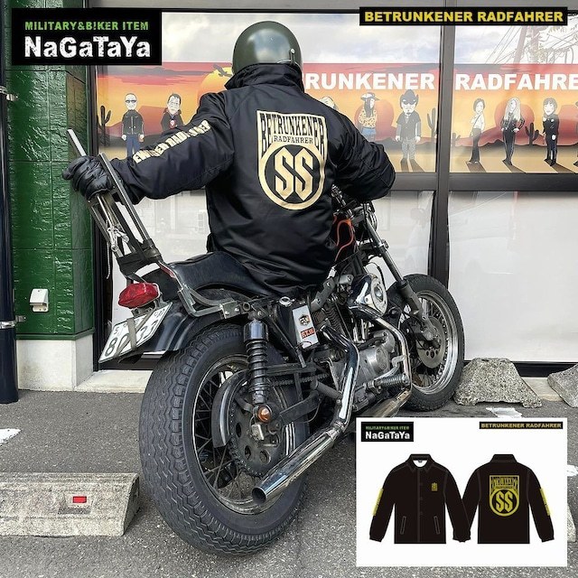 > BETRUNKENER RADFAHRER ベェトォンナ ラドファ エンブレム 裏ボア仕様 コーチジャケット Mサイズ ブラック×ゴールド 黒×金 BIKER