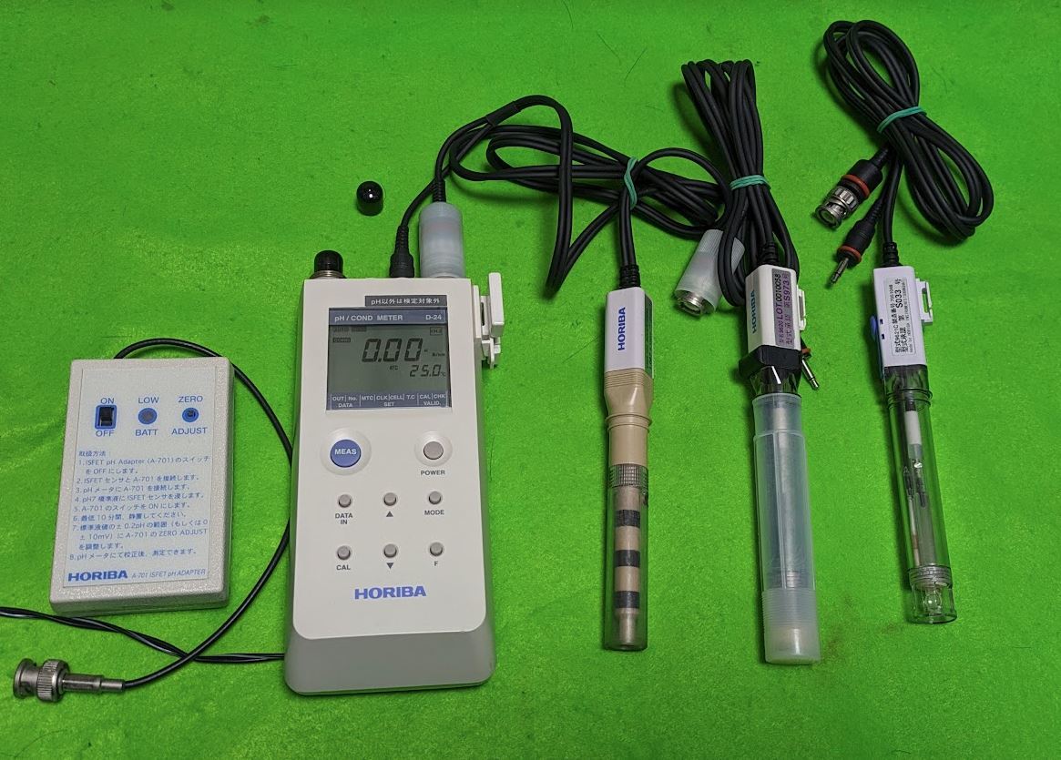 - 【ジャンク・送料無料】HORIBA pH/CONDメーターD-24 + ■電極3本( 9382-10D , 9620 , 9621C )+ A-701