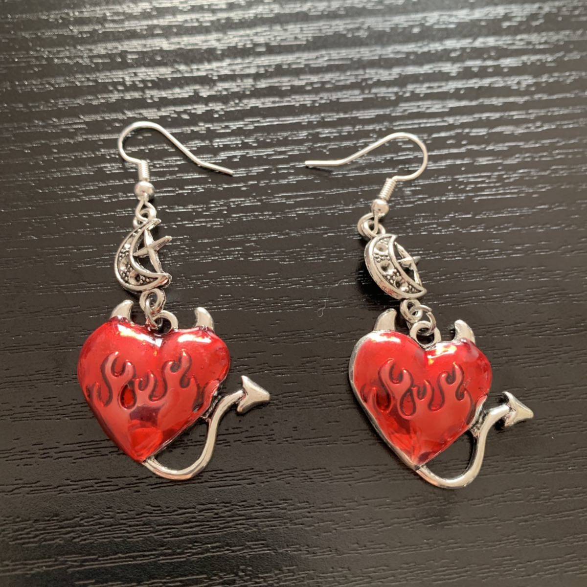 - 地雷系 病み ハート デビル 炎 ピアス シルバー