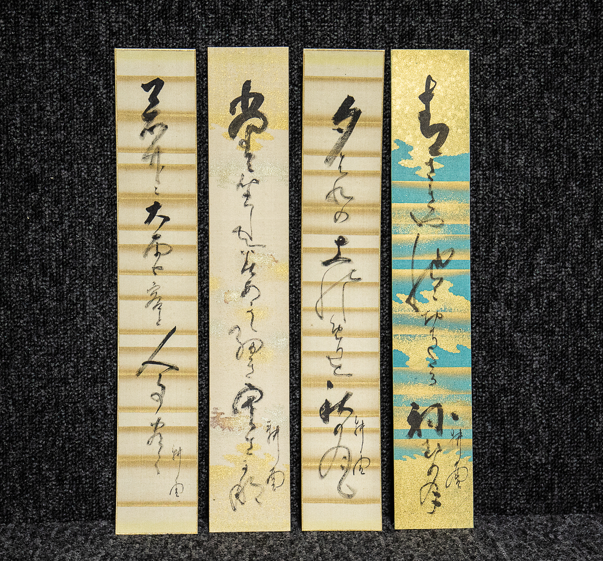 - 短冊ー693 藤田耕雪 短冊4枚 絹本 実業家 藤田組副社長 妻(春宵女)と共に高浜虚子に師事ホトトギス【真作】