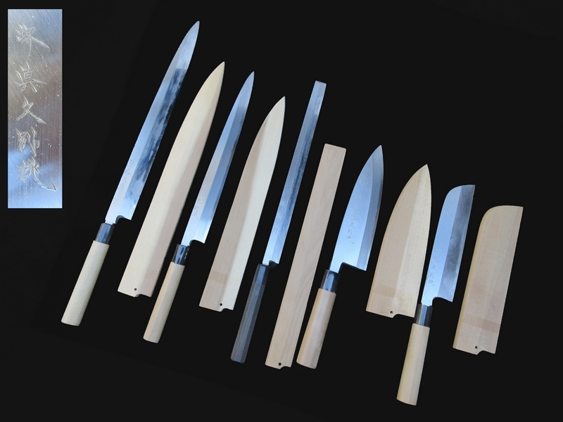 - 堺真久 包丁 まとめて ■ 刺身包丁 柳刃包丁 出刃包丁 薄刃包丁 他 計5点 ■ 日本の包丁 銘彫 専用ケース入り ■