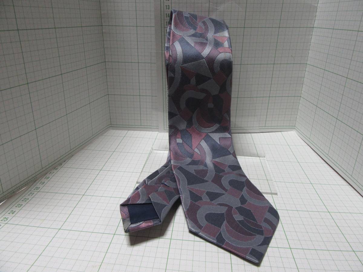 > ◆ネクタイ: sunroad 西陣織 絹100% 少し光沢のある幾何学模様 色:グレー+薄いピンク ビジネス カジュアルに最適 自宅保管商品G97