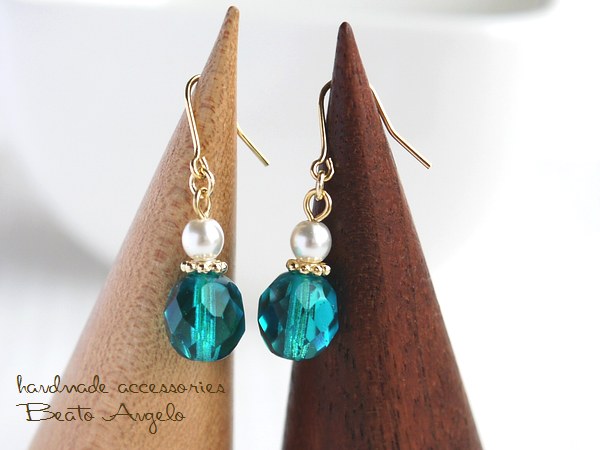 > ◆◆+angelo+チェコビーズとスワロフスキーパールのピアス(p-283)ブルージルコン G 香水瓶 チタン 樹脂 イヤリング