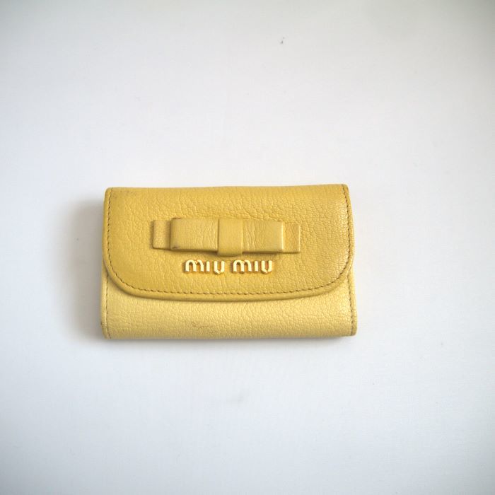 - $ 美品 $ 訳あり 激レア ■ miumiu ■ ミュウミュウ ■ リボン付き マドラス 本革 レザー製・ 6連キーケース■ 黄色 イエロー ■ 送料無料